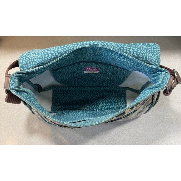 Fossil Key Per Coated Canvas Messenger Bag Key Print Adjustable Strap Blue/Brown