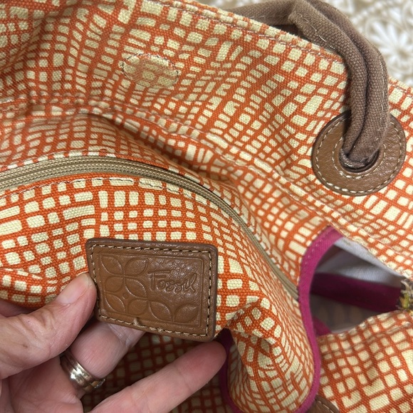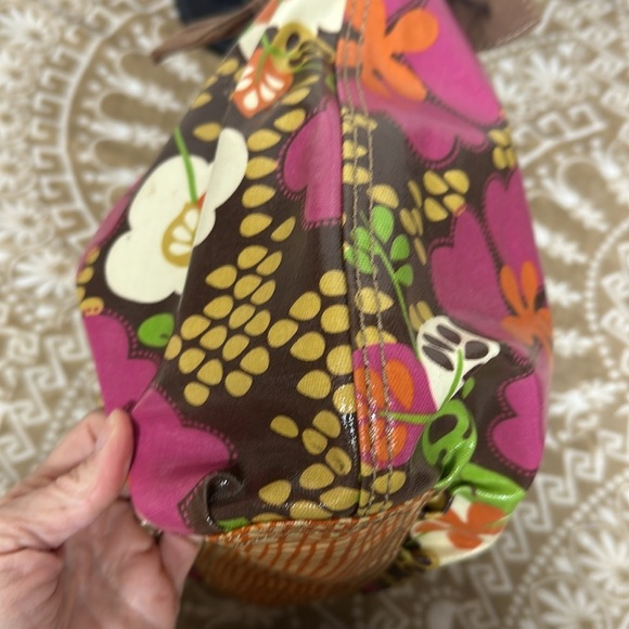 Fossil Key Floral leather Shoulder Bag Purse Tote Retro Hobo Shopper