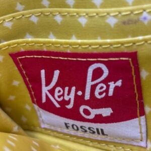 Fossil Key Per Red Yellow Floral Coated Canvas Card Zip Wallet Vintage
