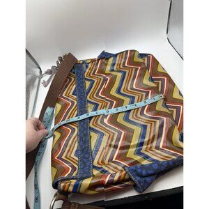 Fossil Key-Per Briefcase Coated Canvas Multi Color Chevron Pattern Messenger Bag