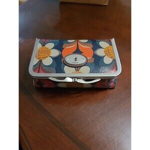 Fossil Key-Per Brown Floral Make Up/travel With Mirror Metal Snap 6.5"x4"x2"
