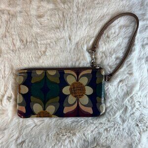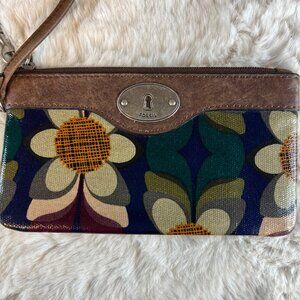 Fossil Key-Per Coated Canvas & Leather Zippered Wristlet Bag Wallet Floral Desig