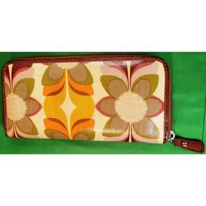 Fossil Key-Per Coated Canvas Wallet Leather Clutch Geometric Floral Zip Around