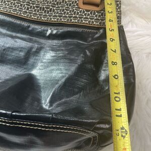 Fossil Key-Per Coated canvas black tan leather trim medium Shoulder .