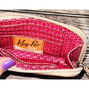 Fossil Key-Per Deep Pink Coated canvas Zip Wristlet Purse Card Holder