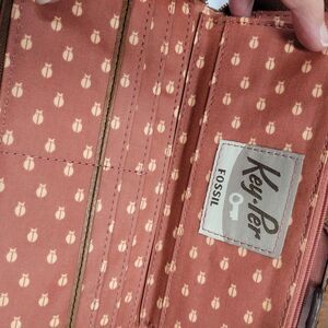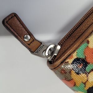 Fossil Key-Per Poppy Floral Wallet Cred Cards Checkbook Zip Silver Logo NWOT