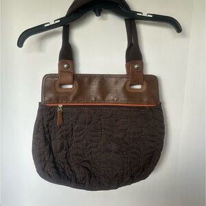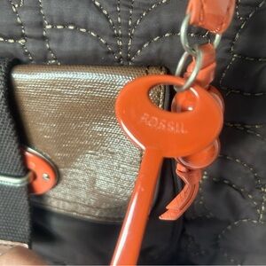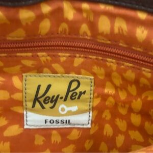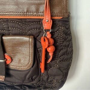 Fossil Key-Per Quilted/Leather Shoulder Bag Brown Orange Key Tag Attached magnetic closures separate small front pocket/compartment