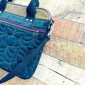 Fossil Key-Per Quilted Padded Laptop Messenger/Crossbody Bag