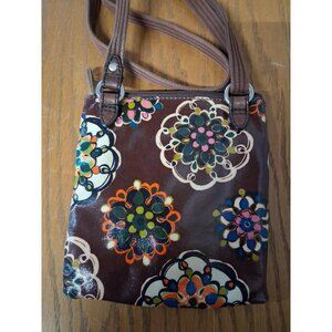 Fossil Key-Per Small Brown Floral Crossbody Bag With Adjustable Strap & Zip Clos