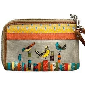 Fossil Key-Per Yellow Blue Bird Print Zip Around Wallet