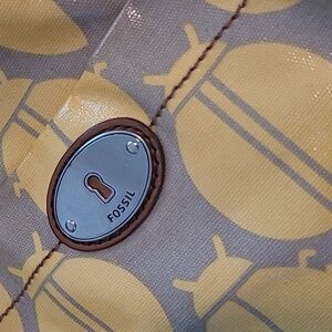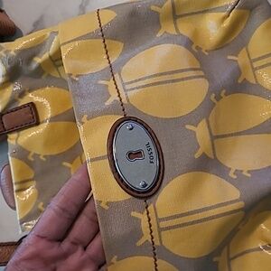 Fossil Key-Per Yellow Tan Ladybugs Coated Canvas Leather Top Handles Crossbody