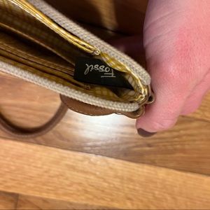 An adorable pattern on super handy wristlet! It’s approximately 4”x6” and has tons of card slots inside. For reference, an iPhone 13 (in a case) just fits inside but it does not zip easily. It is in like-new condition!