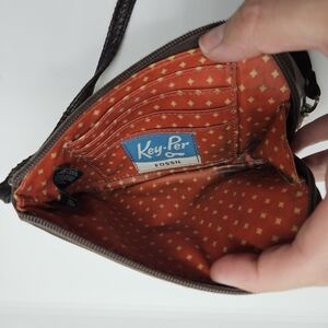 Fossil Key-Per coated canvas wristlet wallet giraffe print