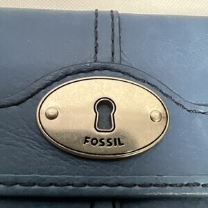 Fossil Keyhole Leather Bi Fold Blue Wallet