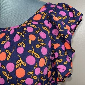 Fossil Keyhole Mini Dress Flutter Sleeves Fruit Print Navy Blue,Purple,Orange Women's Size XS