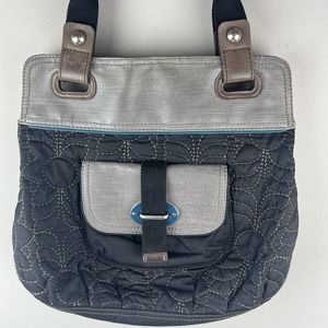 Fossil Key-per Navy Quilted Nylon Leather Tote Bag Flower Design Satchel.