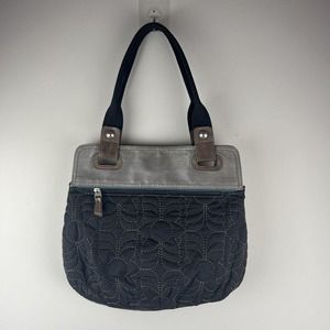 Fossil Key-per Navy Quilted Nylon Leather Tote Bag Flower Design Satchel
