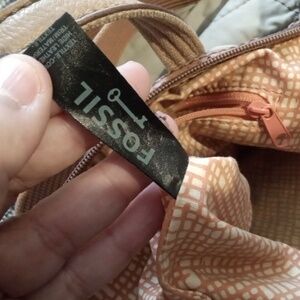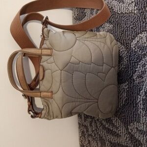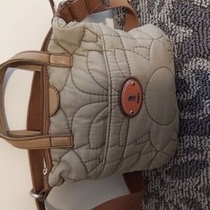 Fossil Key-per Tan Beige Qiulted Floral Nylon Crossbody Womens