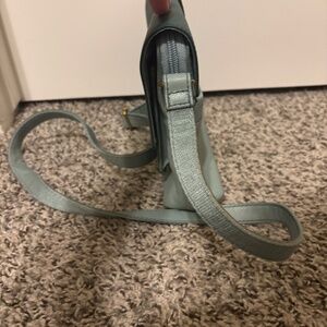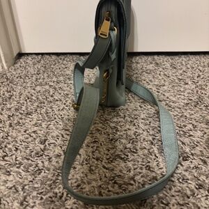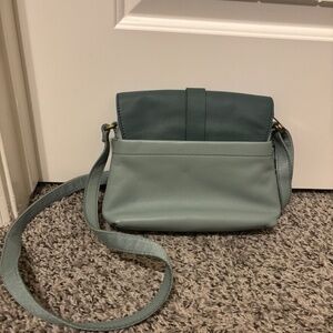 This stylish two-tone bag features beautiful seafoam and slate-green leather, giving it a soft, modern look that pairs great with any outfit. Compact yet roomy, it has plenty of space for your essentials and an adjustable strap for comfortable, hands-free wear.
