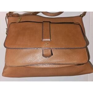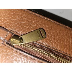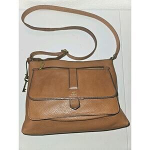 Fossil Kinley Medium Brown Pebbled Leather Crossbody Purse Bag 12x9x2