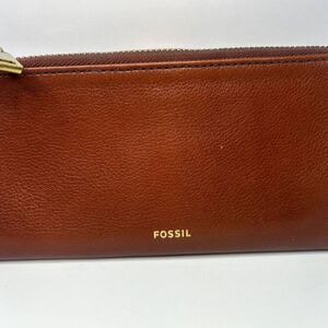 Fossil Lainie Brown Crossgrain Leather Organizer Clutch Wallet