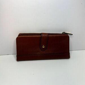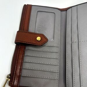 Fossil Lainie Brown Crossgrain Leather Organizer Credit Card Snap Clutch Wallet