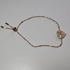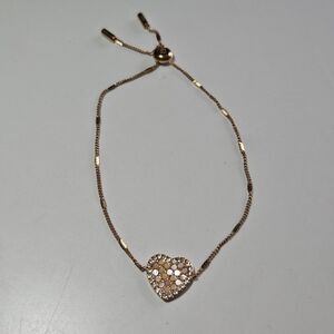 Fossil Lane Heart Rose Gold-Tone Steel Bracelet - "P"