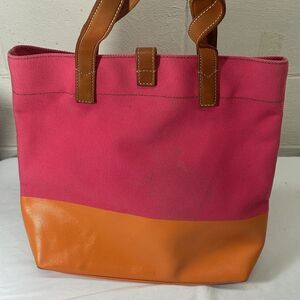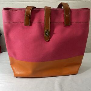 Fossil Large Pink and Orange Tote Bag with Leather trim