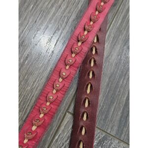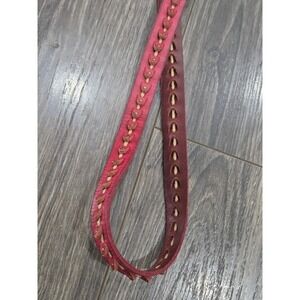 Keywords: Fossil, leather belt, pink belt, burgundy belt, braided belt, women's belt, accessory, fashion belt, designer belt, casual belt, dress belt, statement belt, boho belt, western belt