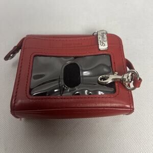 Fossil Leather Bifold Wallet Red Card Organizer Zip Coin Pouch