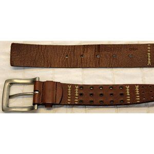 Fossil Leather Brown Belt with Rivets and Metal Studs Cross Stitch Size M