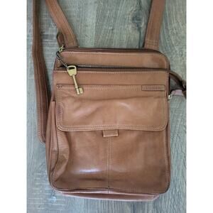 Fossil Leather Brown Traveler Organizer Crossbody Purse 8 X 9