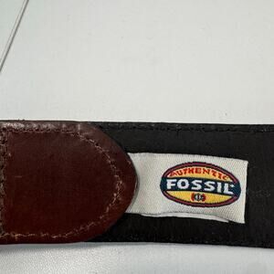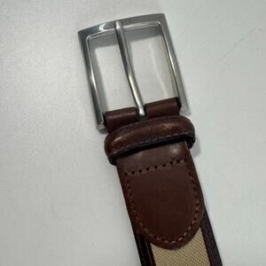 Fossil Leather Canvas Full Grain Cowhide Belt Mens 36 Brown Silver Buckle Woven
