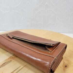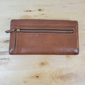 Fossil Leather Checkbook Wallet Womens 7" Brown Trifold Cash Card ID Slots