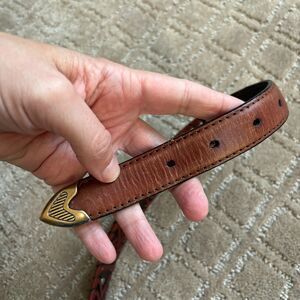 Fossil Leather Concho Belt Men 34 Brown Silver Full Grain Cowhide South Western.