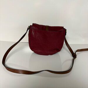 Fossil Leather Crossbody Bag Adjustable Strap Buckle Detail Red Wine Purse
