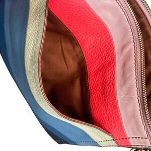 Fossil Leather Crossbody Hand Bag Multicolor Stripe Boho Retro Purse Y2K Rainbow
