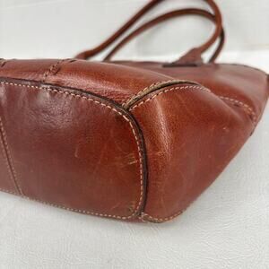 Fossil Leather Handbag Brown Leather 3 Compartments Double Handle