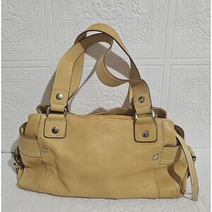 Fossil Leather Handbag Buckle Yellow Y2K Purse Double Handle Boho
