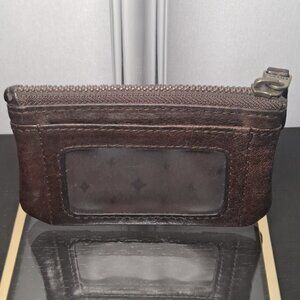 Fossil Leather Key Chain Id Coin Purse Credit Card Holder Burgundy Zip Button