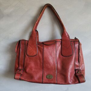 Fossil Leather Keyhole Tote Shoulder Bag in Red