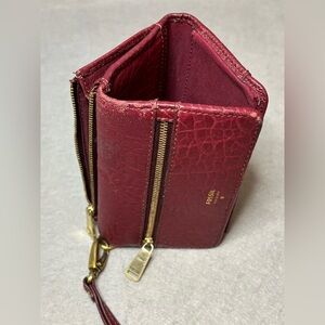 Fossil Leather Maroon Trifold Wristlet Wallet, Card Holder, Excellent Condition