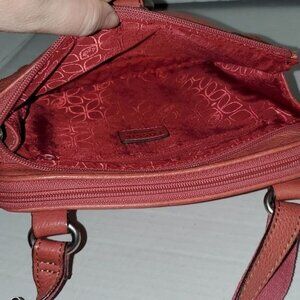 VINTAGE Fossil Red Leather Messenger Bag Crossbody Shoulder Tote Handbag Satchel Purse