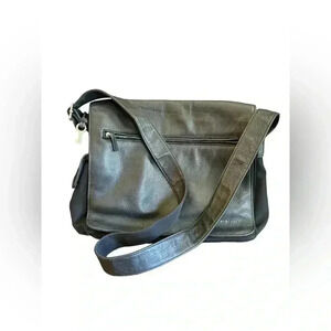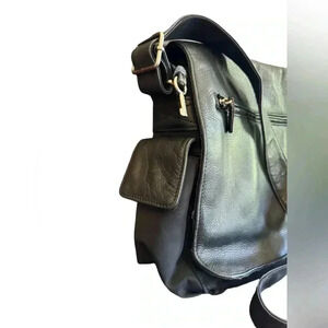 Fossil Leather Microfiber Black large Multi Pocket Shoulder Tote Messenger Bag