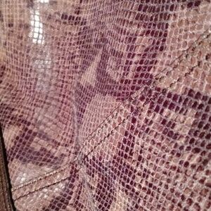 Fossil bucket bag snake skin and leather with silver hardware. lots of room in great condition.only a couple of scuffs shown in pics. clean no smells. great quality.key charm is mossing.