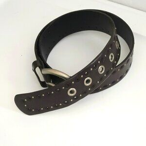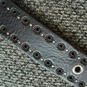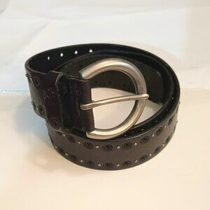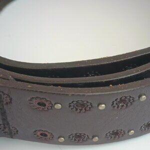 Fossil Leather Stud Riveted Belt S Women's Silver Dark Brown Laser Cut Flower
