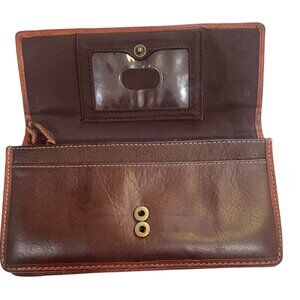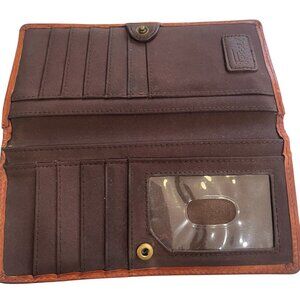 Fossil Leather Tooled Floral Wallet Studded Western Boho Rustic Vintage