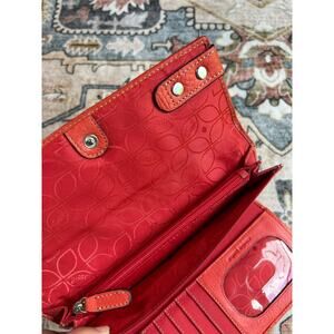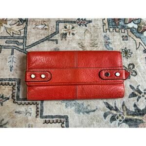 Fossil Leather Tri Fold Wallet Y2k Genuine Leather Pocket Book Coral Red