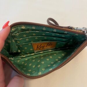 Fossil Leather Wristlet Key-Per Calypso Geometric Brown Gray Orange Pattern