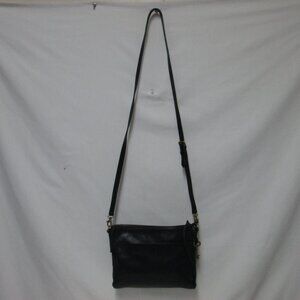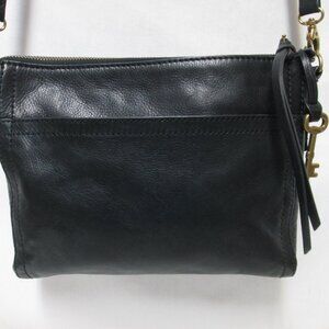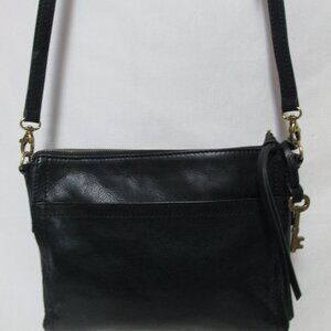 Fossil Leather black Crossbody Bag Purse zip top back slide pocket adjustable